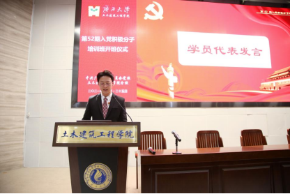 接下来,培训班学员代表王振宇同学上台发言,他代表全体学员对学院党委所提供的宝贵的学习机会表示感谢,并呼吁全体学员珍惜党校培训机会,以党员的标准严格要求自身,以饱满的热情投入党课。并表示作为青年一代要不忘初心,牢记使命,砥砺前行。为使我院党校培训工作顺利展开,规范推进,培训部王千龙同学宣读《а√中文在线资源库党校分校第52期入党积极分子党课纪律》,强调各学员在学习中应遵守的要求与纪律。