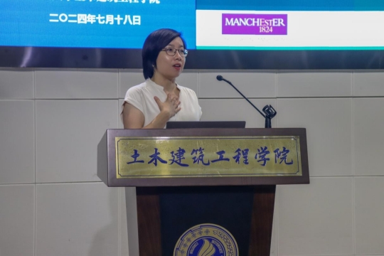 随后,英国曼彻斯特大学苏玫妮副教授作了题为“石墨烯脱碳结构”的报告,报告中就混凝土中如何利用石墨烯材料实现碳中和、去碳化等方面进行了生动形象的讲解,激发了同学们对环保绿色建材的兴趣,营员们对于土木工程专业的发展前景、科研规划有了更清晰的认识。
