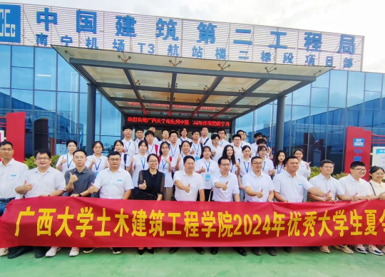 7月18日-20日,我院顺利开展2024年优秀大学生夏令营系列活动。开营仪式结束后,为了让营员们能够加强对现代建筑技术和工程管理的了解。7月18日下午,我院党委副书记银宁、学工组陆源、赖珩、张科富老师带领营员一同前往华润大厦和南宁T3航站楼项目进行实地调研。