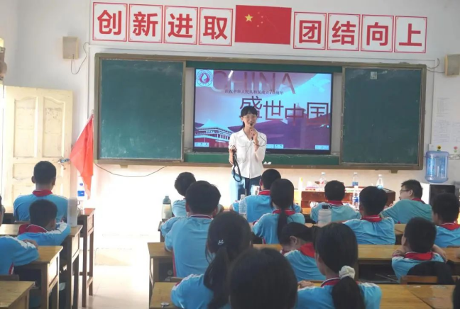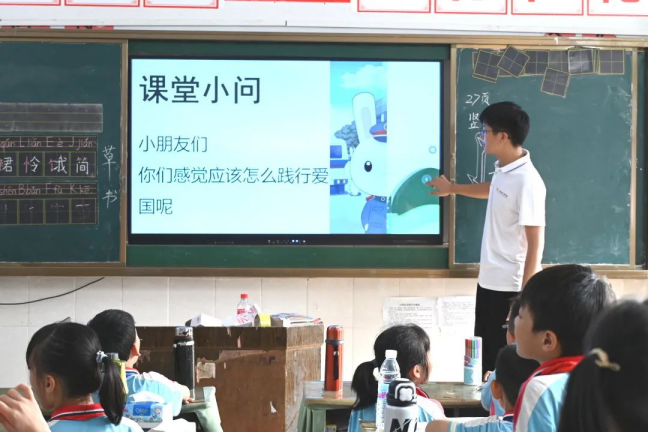 为增强课堂的趣味性,志愿者们还在课堂讲座上设置了趣味问答环节,例如提出“哪两条河被称为中国的母亲河?我国的国旗是什么?”等问题,面对志愿者提出的问题,小学生们都积极举手回答,参与课堂互动。这种趣味问答形式加深了小学生们对于祖国的理解,并且能帮助小学生们了解祖国的全貌,树立正确的三观。