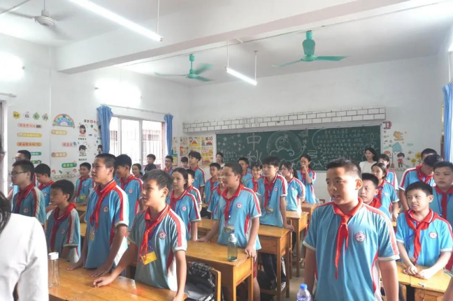 趣味课堂过后,志愿者还组织小学生们唱国歌,增强小学生们对党和国家的认同感。