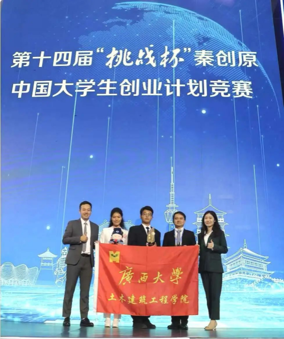 11月2日,由共青团中央、教育部、人力资源社会保障部、中国科协、全国学联、陕西省人民政府联合主办,由西安交通大学、共青团陕西省委承办的第十四届“挑战杯”秦创原中国大学生创业计划竞赛在西安交通大学落幕。经过激烈角逐,我院参赛项目《砼龄卫士——反渗与饱和的混凝土主动防腐技术首创者》从众多项目中脱颖而出,喜获金奖(全国共180项)。这是我院连续第二届荣获金奖,也是此次竞赛中广西壮族自治区获得的唯一金奖。同时,《智隧碳路先锋——装配式地下结构低碳设计与智慧运维先行者》项目获得铜奖,是我校获得的五个铜奖之一。