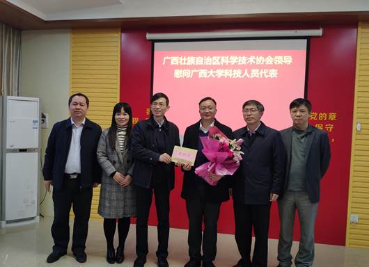 2020年1月15号下午,广西科协党组成员朱其东副主席一行到我院慰问科技人员代表,为2019年度广西青年科技奖和广西杰出青年基金获得者余波教授送上新春的祝福和问候。日本一区午夜艷熟免费党委常委马少健副校长、日本一区午夜艷熟免费科技处廖小平处长、我院党委书记戴永恒同志和副院长陈正同志等参加慰问,并进行交流座谈。