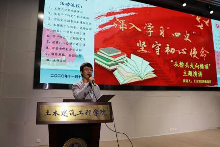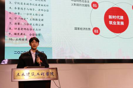 比赛中,各位参赛选手围绕“学四史、明初心、担使命”的主题进行一分钟主题宣讲,讲述新中国发展历程中革命先烈的英雄事迹,赢得了现场观众和评委们的肯定。第一轮比赛结束后,刘梦娟老师开展了一堂以学“四史”为主题的微党课,课上刘老师通过让同学们观看视频《后浪》,向同学们强调作为一名新时代青年,要坚定自己的理想信念,用知识武装自己,树立正确的奋斗观,承担起自己的责任与使命,争做有为新青年。