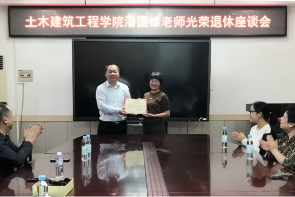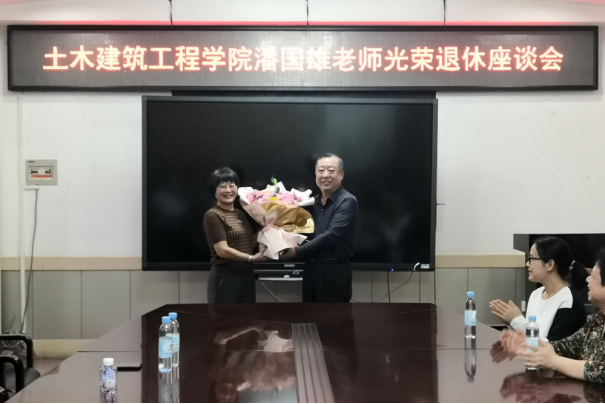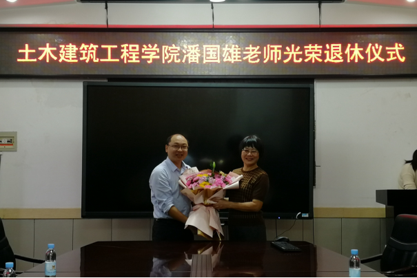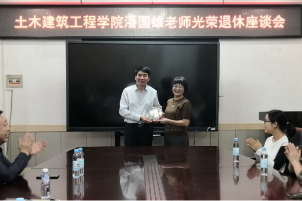 会前,学院党委书记戴永恒、教务处处长邓文、学院常务副院长陈正、学院原党委书记苏益声等先后向潘国雄老师颁发光荣退休证书、纪念品,并献上祝福鲜花。会后,同事们与两位退休老师一起合影留念。