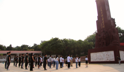 伴随着《献花曲》低沉的旋律,同志们绕行瞻仰人民英雄纪念碑并献上鲜花,追思英烈的丰功伟绩,表达对烈士的崇高敬意。接着全体党员面向党旗进行庄严宣誓,院团委书记李道洋老师领誓,全体党员举起右手,庄重严肃、铿锵有力地重温入党誓词,重忆入党初心。