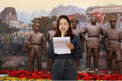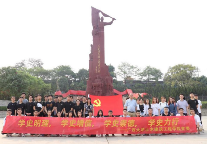 在广西革命纪念馆,同志们共同回顾了党组织在广西初创时的艰难与坚韧,感受了自辛亥革命以来,广西人民波澜壮阔的革命斗争史,重温了革命先烈为广西解放和新中国成立,前仆后继的壮烈场面。通过一件件珍贵的历史文物,一张张感人的历史图片,一个个震撼人心的革命故事,大家深刻的领会到革命先烈的爱国主义精神和英雄主义精神永远是中华民族前进的巨大动力。在广西革命纪念馆前厅,本科生代表何运森同志、研究生代表刘祖汉同志与周奕彤同志分别为党员代表们分享了自己身边的党史故事。