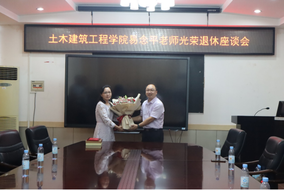 座谈结束后,戴永恒书记,陈正常务副院长先后向易念平老师颁发光荣退休证书、纪念品,并献上祝福鲜花。最后,领导和同事们与易念平老师一起合影留念。