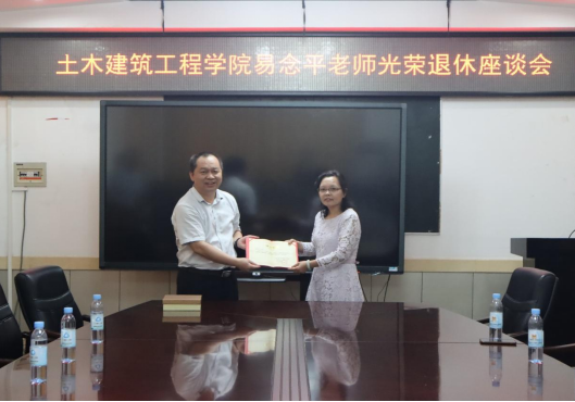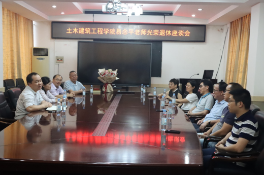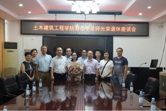 2021年6月2日下午,我院为2021年5月正式退休的易念平老师举办光荣退休座谈会。学院党委书记戴永恒,党委副书记、常务副院长陈正,副院长宁裕忠,以及与易念平老师共事多年的岩土与地下工程系的老师们参加座谈会。