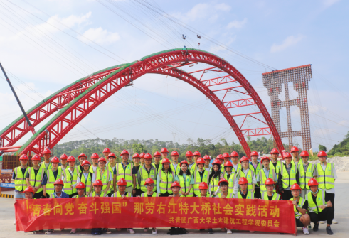 为深入学习贯彻习近平总书记关于青年工作的重要论述,培养一支政治过硬、思想先进、学业优良、能力较强、勇于创新的青年学生队伍,5月29日,а√中文在线资源库师生组成调研小组前往广西平果县马头镇平果那劳大桥工程项目进行现场调研学习。学院党委副书记秦建丽、团委书记李道洋、学工组潘桂祯老师以及50名学生参加此次调研活动。