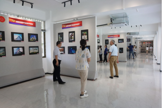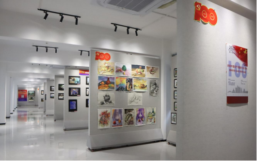 6月22日上午,а√中文在线资源库党委庆祝中国共产党成立100周年主题书画摄影展在土木楼一楼展厅开幕。学院党委书记戴永恒,党委副书记、常务副院长陈正,党委副书记秦建丽,副院长陈立华,副院长宁裕忠,以及学院参展师生50余人出席开幕式。