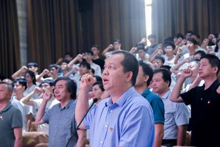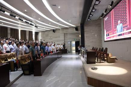 上午8点,与会全体人员集中观看了庆祝中国共产党成立100周年大会实况转播,共同聆听了习近平总书记的重要讲话。直播结束后,与会党员同志们纷纷表示:一定会积极响应党中央的号召,始终与人民想在一起、干在一起,坚定跟党走,做到忠诚有我、接续奋斗,无愧于时代、无愧于党和人民,誓做一名优秀的共产党员。