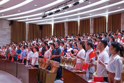 最后,全体与会人员放声歌唱《歌唱祖国》,嘹亮的歌声在会场久久回荡。百年恰是风华正茂。我们坚信,在中国共产党的坚强领导下,中国必将取得更大发展成就,朝着实现中华民族伟大复兴的目标不断迈进。目光所至皆为华夏,五星闪耀皆为信仰,祝福伟大的祖国繁荣昌盛!伟大的中国共产党万岁!