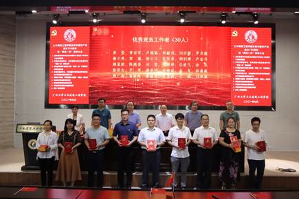 观看完实况转播,学院党委副书记、常务副院长陈正宣读了《关于表彰2020-2021年度学院优秀共产党员、优秀党务工作者和先进党支部的决定》,本次学院共表彰优秀共产党员80人、优秀党务工作者30人、优秀党支部9个。学院党政领导为学院“两优一先”代表颁发了证书和纪念品。