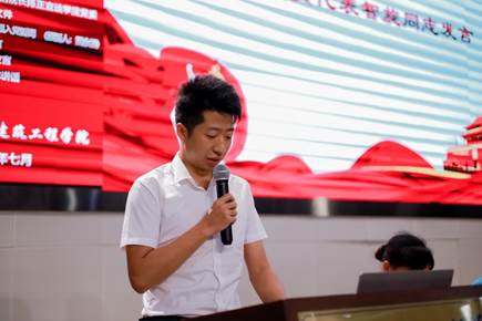 宣誓完毕后,新党员代表智旋同志和老党员代表周奕彤同志先后发言,表达了学生党员对党的深厚感情和对党忠诚、不断提升自我、为党奉献的决心。其后,学院党委书记戴永恒同志做总结讲话,对新党员同志表示了祝贺,寄予了殷切期望,鼓励全体党员向“两优一先”集体和个人学习,深入学习贯彻落实习总书记在庆祝建党100周年大会上的讲话精神,以昂扬的精神状态奋力前行,为实现中华民族伟大复兴的中国梦努力奋斗!