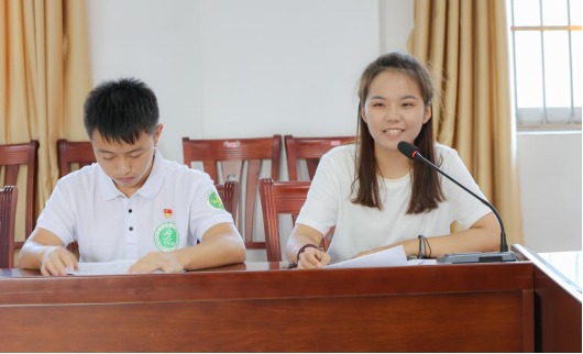 座谈会伊始,现任扶绥县新宁镇副镇长、我院2019届定向选调生唐宇豪进行工作汇报,唐宇豪结合两年多基层工作经历,分享了工作期间的感悟,表达了对母校长期培养、关怀的感恩之心,并提出了扎根基层、建设壮美广西的信心和决心。唐宇豪认为,基层是锻炼人的战场,要始终用党性原则修身律己,切实以坚强党性取信于民、引领群众,用心、用情、用力地解决好群众急、难、愁、盼的问题。唐宇豪希望实践团的成员能够通过本次暑期实践,在坚定理想信念中找准“新身份”;在后续学习中汲取“新知识”;在勤思多想中展现“新作为”。