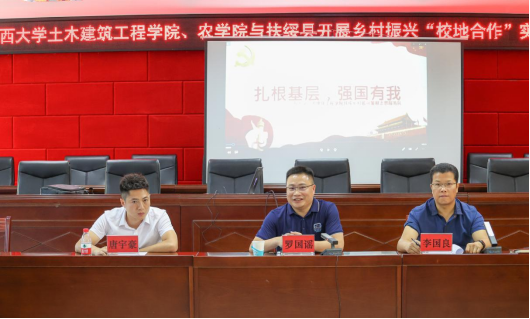 8月24日,学院党委赴扶绥县新宁镇开展走访选调生并看望“三下乡”社会实践团活动,期间学院党委和农学院党委及学校相关职能单位领导就推进乡村振兴“校地合作”实践基地建设事宜与扶绥县委、扶绥县新宁镇的相关领导进行进行了交流座谈,学院党委书记戴永恒、农学院党委书记张国宏、校农牧产业发展研究院副书记李仁柏、扶绥县委常委、组织部长罗国谣以及校党委宣传部、人力资源处、校团委等领导参加相关活动,扶绥县新宁镇党委书记李国良主持座谈会,我院2019届定向选调生、扶绥县新宁镇副镇长唐宇豪汇报了扎根基层两年多的工作情况。