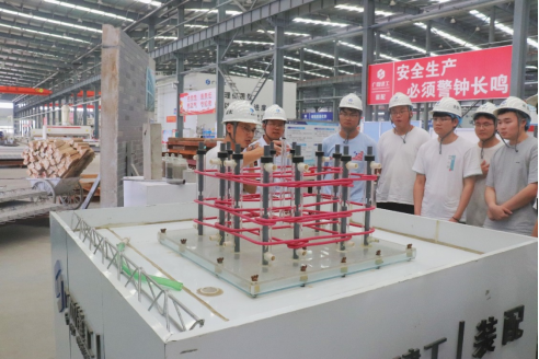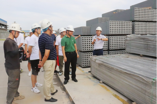 最后,在新型墙体材料研发生产基地,工作人员展示了各类轻质隔墙和内墙板。同学们了解到,这些新型墙体材料相对于传统墙体材料,具有墙体薄、单位容重轻、施工速度快、隔音隔热性能好、墙面平整度高等天然优势,在有力助推装配式建筑在广西发展的同时,亦有利于实现建筑垃圾资源化利用。
