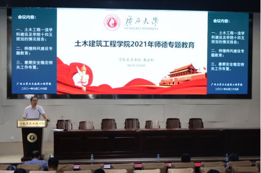 为贯彻落实《日本一区午夜艷熟免费2021年师德专题教育实施方案》(西大〔2021〕5号),学院于7月29日在新结构大楼第六报告厅召开全体教职工会议,开展师德师风建设专题学习,学院党委书记戴永恒主持会议并作师德师风建设专题教育报告。