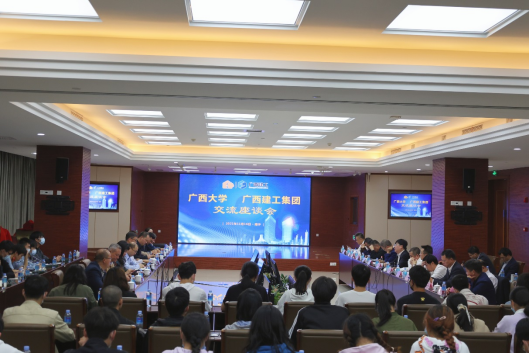 会上,我院82届校友、广西建工集团公司总经理罗涛对学院师生的到来表示热烈欢迎,并以学长身份,回忆及分享了自己在西大的求学经历及工作心得。他介绍了集团公司从1953年成立以来的改革发展历程,各个时期企业的业务布局、人才建设、资质情况以及混改后企业取得的新成效、新变化。广西建工以建筑施工与安装为主业,同时积极拓展房地产、建筑机械制造与租赁、建材销售、基础设施投资、国际业务、矿业等业务板块,形成一业为主、多元并进的发展格局,目前各业务板块发展势头良好,有些板块处在行业领先位置。混改一年来,广西建工的发展动力活力得到充分释放,营业收入和利润总额等主要指标快速增长,实现了平稳健康发展。迈向“十四五”新征程,广西建工正以前所未有的信心,全面开展五年发展规划和三年行动计划,力争到2025年末,实现营业收入2500亿元以上、利税总额126亿元以上,力争成为广西国有企业深化改革的标杆。他表示,此次交流座谈暨“两个基地”的揭牌,拉开了双方校企合作、产教融合的新序幕,开启了产、学、研、用合作新征程,希望双方不断完善交流机制,深化合作平台,不断加深合作的深度广度。