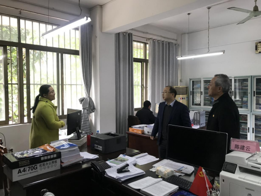 为全面掌握我院新学期开学工作的准备和运行情况,使新学期有一个良好的开端,2月14日上午,学院党委书记陈正、副院长宁裕忠、行政办公室主任周鹭一行,先后到我院行政办公室、学工组、教学办公室、研究生办公室和实验中心等进行了全面的现场检查。