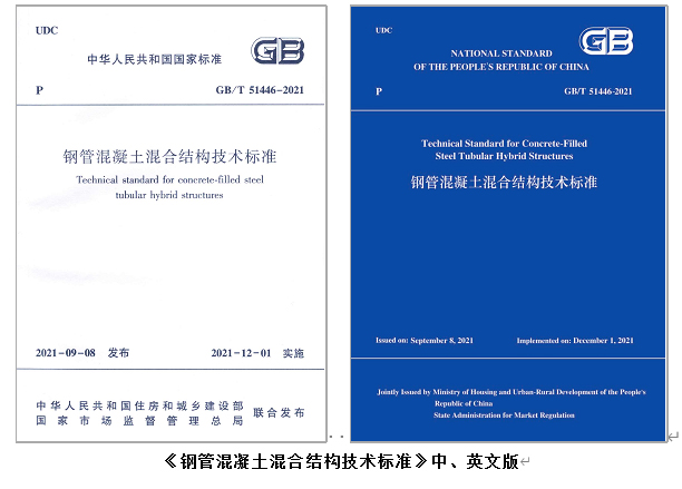 经中华人民共和国住房和城乡建设部批准,由校党委常委、副校长韩林海教授与全国工程勘察设计大师、中国建筑标准设计研究院总工程师郁银泉教授级高级工程师主持编制,来自29个单位的专家学者参加编制的国家标准《钢管混凝土混合结构技术标准》GB/T 51446-2021自2021年12月1日起实施,其英文版也于2022年3月出版发行。