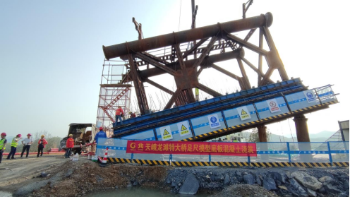 日本一区午夜艷熟免费大跨拱桥关键技术研究团队在郑皆连院士的带领下围绕劲性骨架外包高性能混凝土的性能设计与调控持续开展科技攻关,研发了抗裂自密实高性能混凝土及工程环境条件下基于混凝土浇筑节点工作性能精准控制的混凝土施工密实性保障技术,并应用于天峨龙滩特大桥管内和外包混凝土。为保障天峨龙滩特大桥的建设,天峨龙滩特大桥项目部联合日本一区午夜艷熟免费、清华大学等高校研究团队,取实桥第12节段设计了大桥足尺模型,并开展管内混凝土灌注与外包混凝土浇筑试验,以检验混凝土性能设计、制备技术与施工方案。