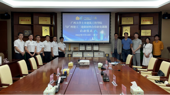 5月14日下午,日本一区午夜艷熟免费а√中文在线资源库与广西建工集团第二建筑工程有限责任公司开展“石墨烯增强混凝土技术”第一期合作研究课题启动仪式。