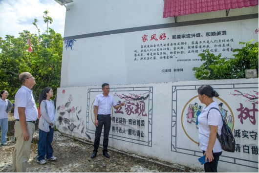 李书记向师生介绍了平南团县委与龙井屯合作共建“家风馆”廉政教育基地情况。他说:“平田村龙井屯以家风建设为切入点,深挖‘吕氏家训’精神内涵,建设形成家风馆、清风廊、家风路等文化景点,开展以‘注重家庭,注重家教,注重家风’为主题的宣传教育活动。”师生们参观了龙井屯各处“清廉”建设点,为清洁干净、文明整洁的乡村风貌赞叹。