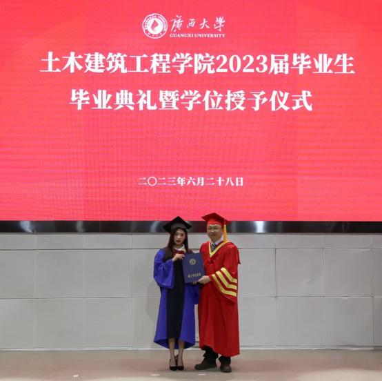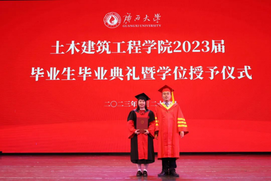 学位授予仪式上,毕业生们随着礼乐声依次上台,安永辉院长与陈正书记为毕业生拨穗,授予学位证书,并与毕业生合影留念。
