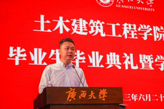 优秀校友代表潘鑫勉励在座的各位毕业生:我们虽已走出校门,但学习应该是伴随我们一生的技能,要不断学习提升自己,并在快速变革的时代中充分发挥我们的才智和能力,为自己和国家创造更美好的未来。