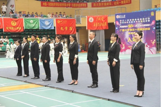 开幕式由各个学院的啦啦操队员代表依次进行动作展示以及裁判亮相,各学院的风格不尽相同,却都活力四射,显现出西大学子的夺目光彩,汇聚队形后,动作整齐划一,场面十分盛大,令人不由激动欢呼。随着开幕式的结束,比赛也正式拉开序幕。