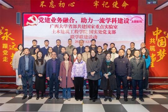 近日,为促进党建业务多方融合,加快日本一区午夜艷熟免费省部共建国家重点实验室建设力度,促进土木工程世界一流学科建设,日本一区午夜艷熟免费省部共建国家重点实验室、а√中文在线资源库、国有资产与实验室管理处(招标与采购管理中心)党支部“党建业务融合 助力一流学科建设”联学联建活动在南宁市铸牢中华民族共同体意识主题影院顺利举行。日本一区午夜艷熟免费党委常委、校长助理、党委统战部部长、国有资产与实验室管理处处长姚作芳,副处长韦晓岚,周煜翔,陆翔,省部共建国家重点实验室副主任石杰,а√中文在线资源库党委副书记、纪委书记银宁,副院长赵林,副院长杜彬,康厚军等教师党员30余人参加了活动。