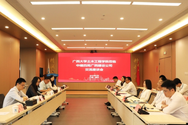 4月17日下午,我院赴中建四局广西建设公司(以下简称中建四局广西公司)开展访企拓岗交流座谈会。中建四局广西公司党委副书记、纪委书记、工会主席张峰,总工程师严柳青,总经理助理黄浩,安全总监唐运剑,人力资源部经理姚冬明,技术部经理张彬及校友代表;学院党委副书记、纪委书记银宁,副院长余波、杨海峰,学工组老师谢雨真及在校学生代表出席座谈会。