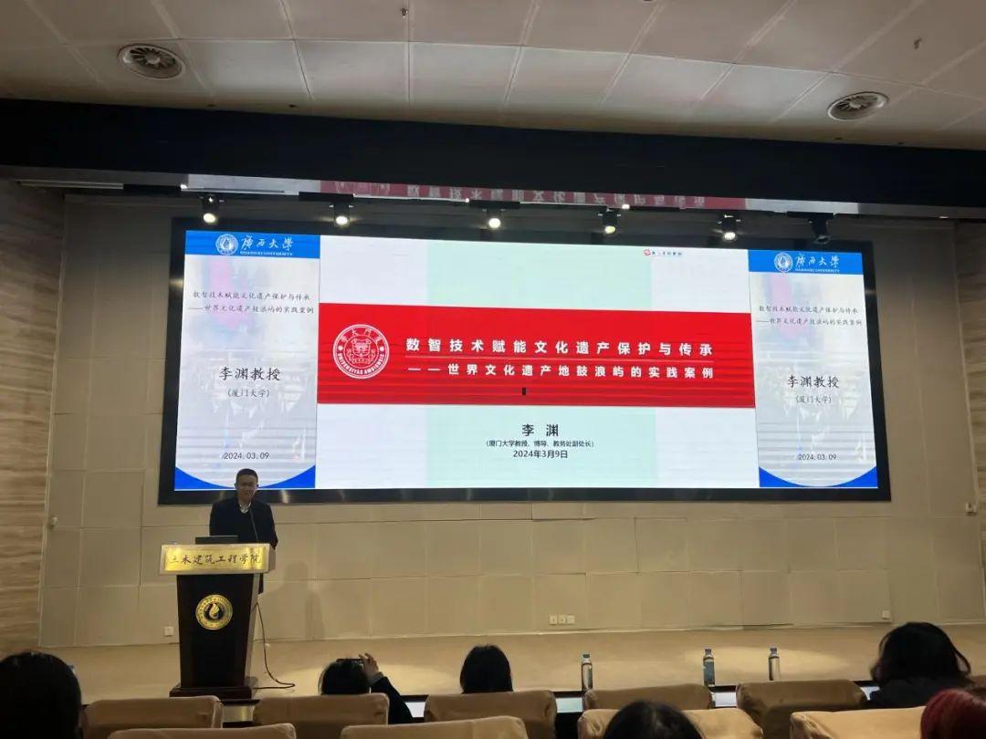 2024年3月9日下午,厦门大学建筑与土木工程学院李渊教授应邀到日本一区午夜艷熟免费а√中文在线资源库交流访问,并在新结构实验平台综合楼报告厅为我院师生作了题为《数智技术赋能文化遗产保护与传承——世界文化遗产鼓浪屿的实践案例》的学术报告。报告由建筑规划系主任李欣教授主持,参加报告的还有廖宇航、谢小英、吴杰、周游、梁林达、顾雪萍等教师,以及200多名学生共同聆听了此次报告。
