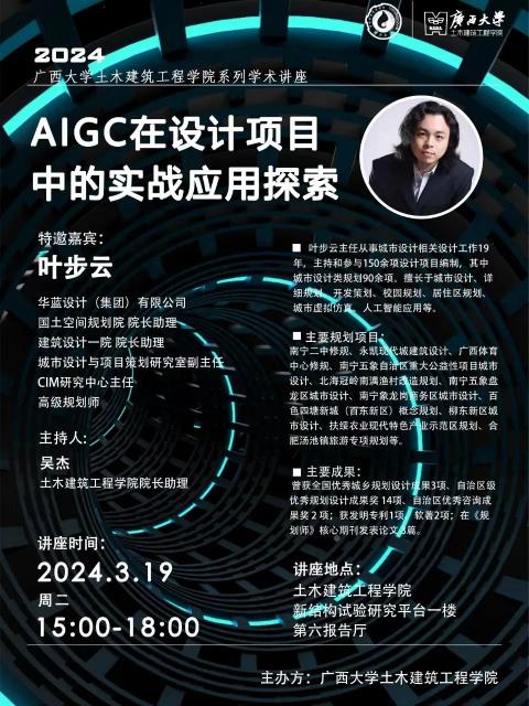 随后,叶步云先生分享了AIGC赋能建筑设计工作流程的案例,介绍了市面上常用的AIGC工具,展示了AIGC如何在实际项目中发挥作用,并耐心讲授了如何使用AIGC辅助建筑设计。为此,他呼吁同学应当学好并善用AIGC赋能建筑方案推敲。