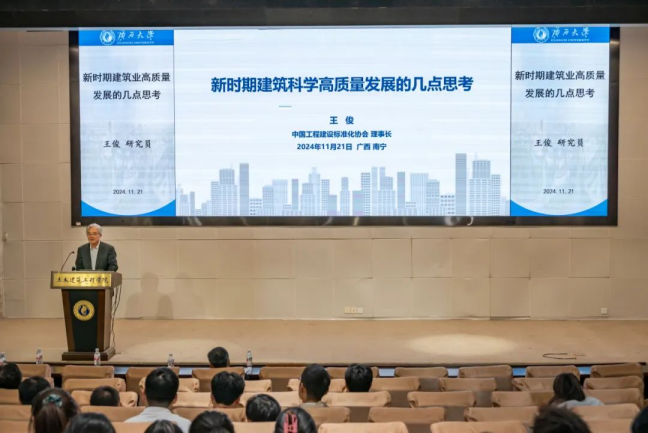 11月21日下午,中国工程建设标准化协会理事长、中国土木工程学会监事长王俊研究员在我院大型结构试验研究平台第六报告厅作了题为“新时期建筑业高质量发展的几点思考”的学术报告。报告会由我校党委常委、副校长肖建庄教授主持。