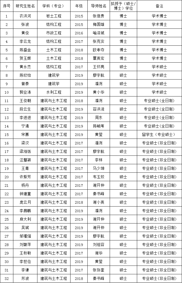 经我院学位评定分委员会审议并投票表决通过,向学校学位评定委员会推荐评定,以下研究生建议授予硕士(博士)学位,予以公示。